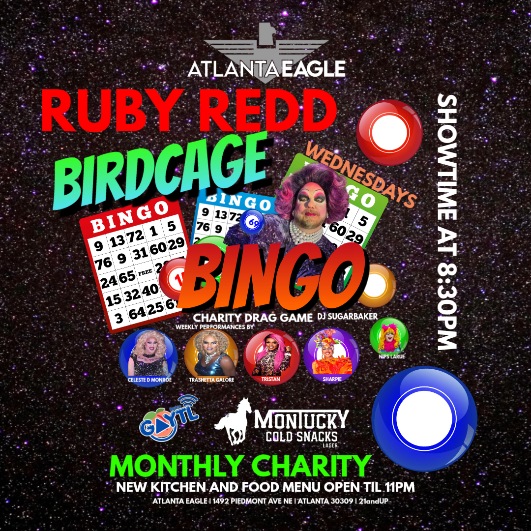 Join us every Wednesday night at Atlanta Eagle for Charity Drag Bingo.